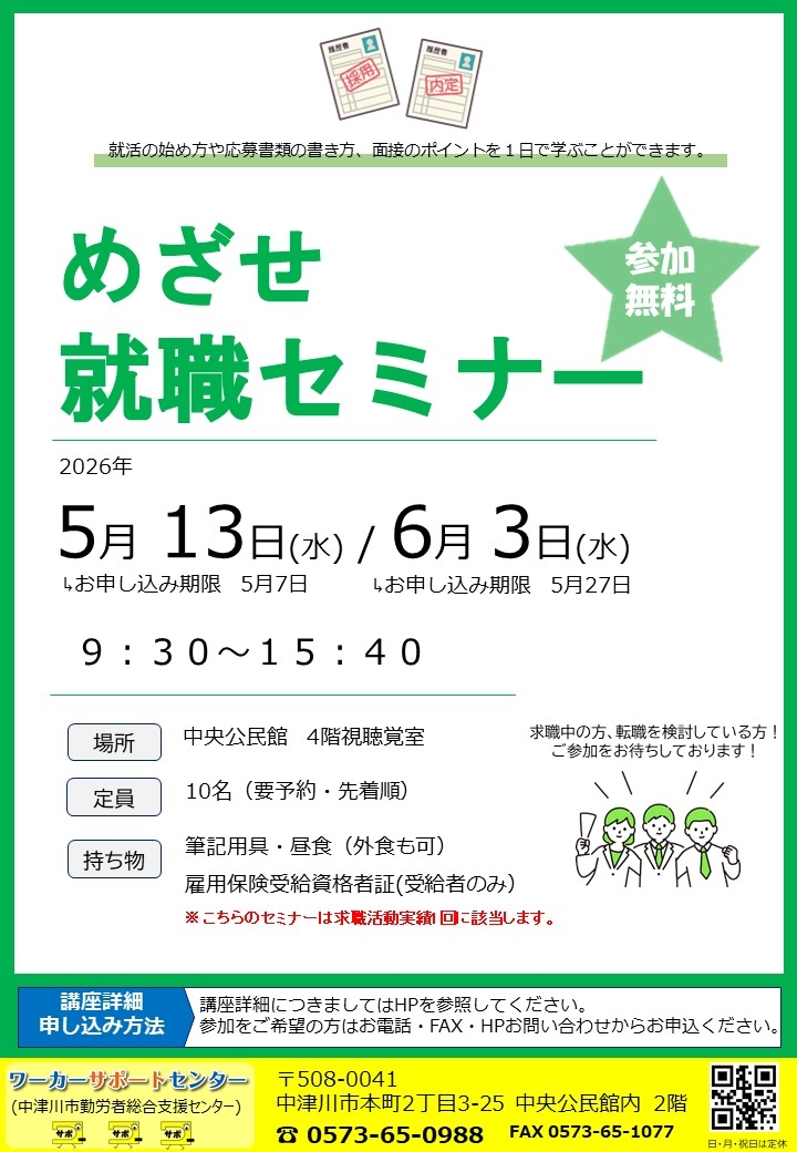 運営:ワーカーサポートセンター(中津川市勤労者総合支援センター)