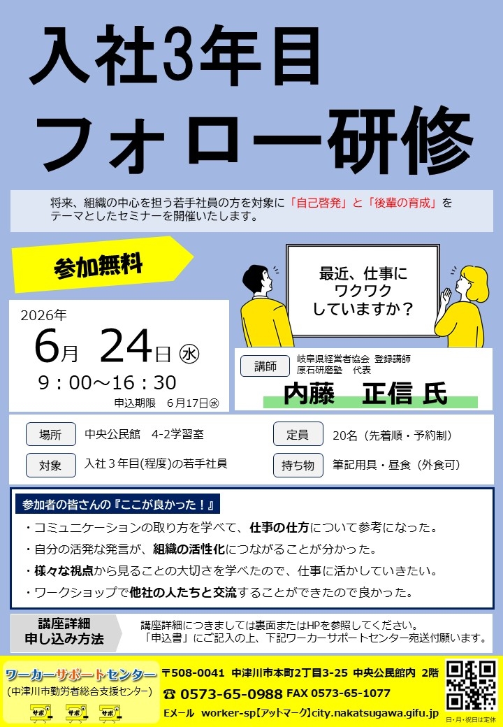 運営:ワーカーサポートセンター(中津川市勤労者総合支援センター)